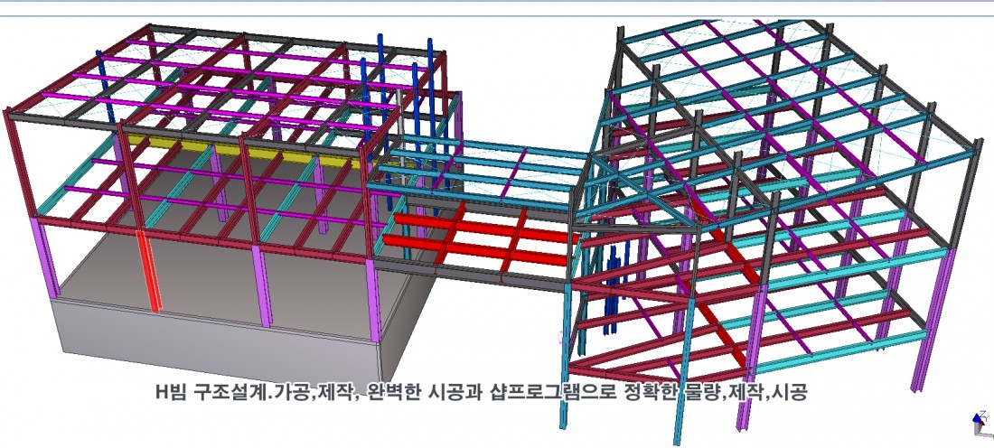 실제 건축도면으로 철골을 제작하는 도면을 다시 만드는게 샵프로그램입니다. 실제 건축사가 만든도면은 허가도면이며ㅡ 샵프그램으로 다시 시공도면을 만듭니다.