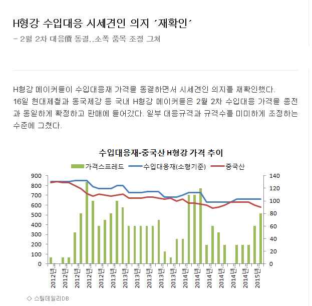 제강사 수입형강 대응 의지 확인 페이지 정보 작성자 더로스 댓글 댓글 0건 조회Hit 101회 작성일Date 15-02-23 08:58 본문 제강사 수입형강 대응 의지 확인 목록 이전글사우디 철근 수출금지 해제 15.02.23 다음글연초 봉형강 철강재 수입 "줄어도 준 게 아냐" 15.01.22 댓글 0 댓글목록 등록된 댓글이 없습니다.