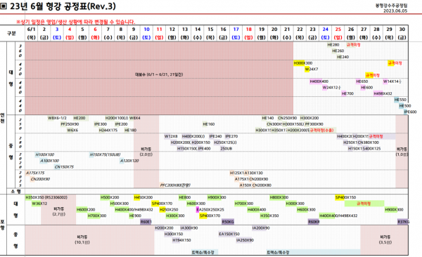 23. 06. 09 현대제철 / 동국제강 H형강 생산일정 및 재고현황입니다.