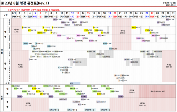 23. 07. 31 현대제철 / 동국제강 H형강 재고현황 및 생산일정표 입니다.