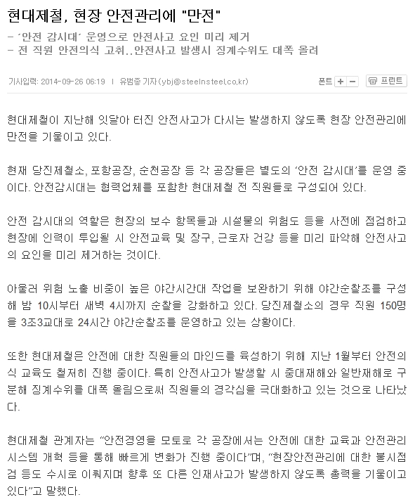 현대제철 현장 안전관리에 만전 페이지 정보 작성자 더로스 댓글 댓글 0건 조회Hit 3,301회 작성일Date 14-09-28 21:49 본문 목록 이전글국토부 건축물 안전제도 대폭 강화 14.09.28 다음글전세계철강인 한자리에 아시아스틸포험 신청도 받습니다. 14.09.28 댓글 0 댓글목록 등록된 댓글이 없습니다.