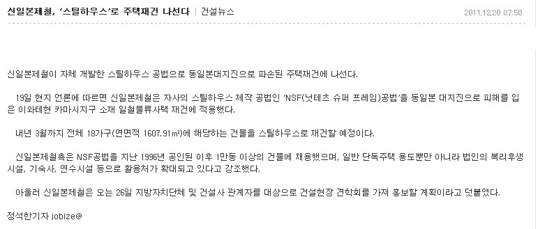 일본 스틸하우스로 지진 재건 도시 만들다 페이지 정보 작성자 더로스 댓글 댓글 0건 조회Hit 8,775회 작성일Date 13-09-17 10:01 본문 일본 스틸하우스로 지진 재건 도시 만들다 목록 이전글경량철구조물 재료비포함 시공비 평당 포함 25만원에 지어 드립니다. 13.09.27 다음글더로스는 건설사 홈페이지 무료로 배너광고해드립ㅈㄴ니다. 13.05.06 댓글 0 댓글목록 등록된 댓글이 없습니다.