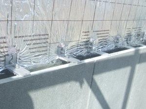 외벽 석재 건식 시공방법은 시멘트, 모래, 물등을 사용하지 않고, 쉽게 부식되는 않는 연결철물을 사용하여
