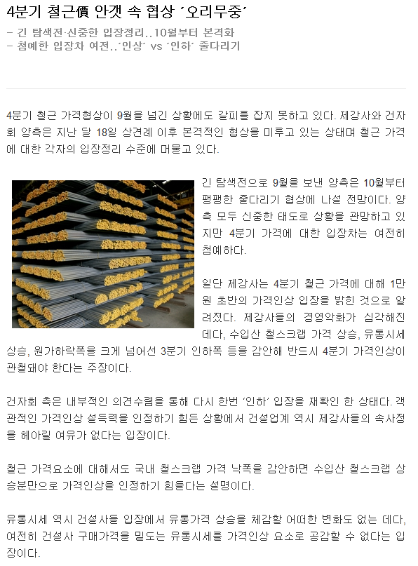 4분기 철근價 안갯 속 협상 ´오리무중´
