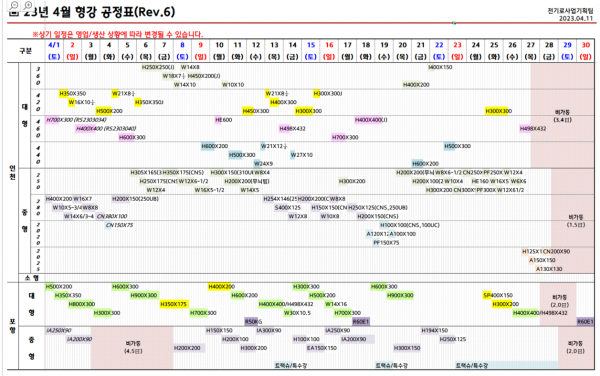 23. 04. 12 현대제철 / 동국제강 H형강 생산일정 및 재고현황입니다.