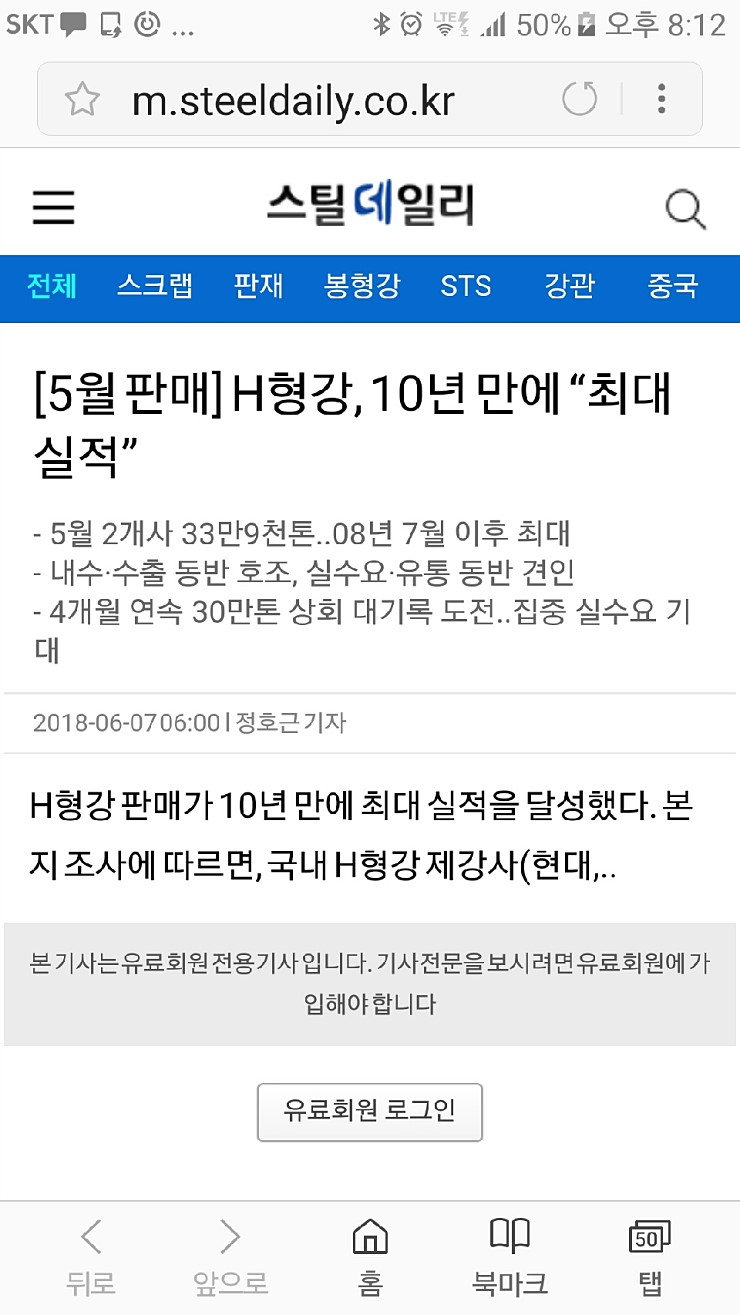 H형강 판매가 10년 만에 최대 실적을 달성했다.