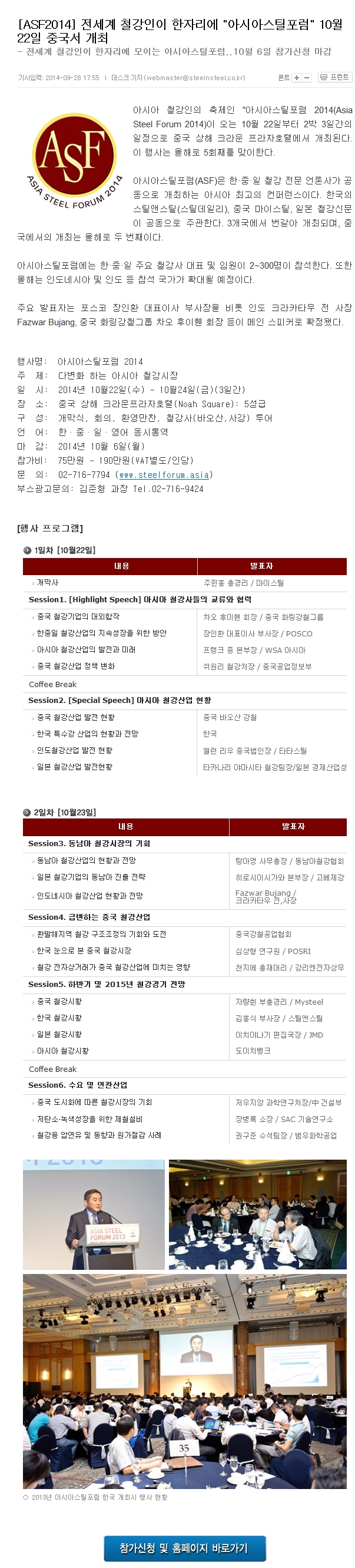 전세계철강인 한자리에 아시아스틸포험 신청도 받습니다. 페이지 정보 작성자 더로스 댓글 댓글 0건 조회Hit 3,262회 작성일Date 14-09-28 21:48 본문 목록 이전글현대제철 현장 안전관리에 만전 14.09.28 다음글H사 수입철근 전량 처분…유통價 영향無 14.08.25 댓글 0 댓글목록 등록된 댓글이 없습니다.