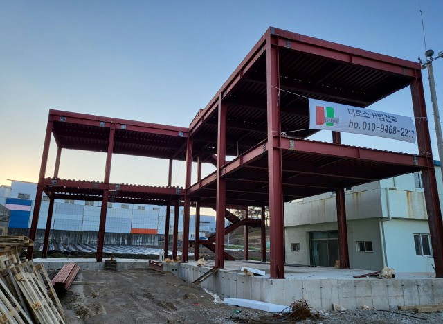 보통리 빔설치.시공/2층 근생,주택/완성 이미지 간략설명 36톤 2층 근생 페이지 정보 작성자 더로스 댓글 0건 조회 303회 작성일 22-03-10 06:58 목록으로 PREVIOUS양평애견까페 철골 제작,시공/완성된 이미지 22.03.10 NEXTH빔가공, H빔제작, H빔시공, 철구조물시공, 보통리현장 철구조물 제작시공중,빔40톤 건물88평 . 21.11.16 본문 상세설명 옥상지붕이라 H빔사이즈도300*300 이 컬럼. 이고 볼트체결.2배이상 되어서 튼튼한 골조 목록 댓글 0 댓글목록 등록된 댓글이 없습니다.